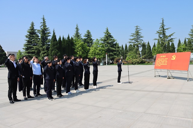 在烈士紀念碑廣場,全體黨員肅立三鞠躬,向革命先烈表達深切哀思和崇高敬意,面向黨旗重溫入黨誓詞,感悟初心使命,提振奮進力量。