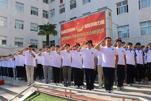 在團旗的見證下,動漫21451班李安瑞帶領164名新團員面向鮮紅團旗,高舉右手,莊嚴宣誓,錚錚誓言高昂雄渾,振奮人心,展示了新團員的信心和決心。全體新團員齊唱團歌,表達了他們愿為共青團增光添彩的豪邁激情,展現出我校團員青年昂揚向上、踔厲奮發的精神面貌。