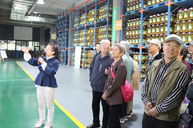 一大早,三個黨支部的在職黨員、入黨積極分子和離退休教職工在校集合,乘坐大巴車前往愛菊工業園,先后參觀了現代化的生產車間、產品展示館和黨建活動中心,詳細了解愛菊企業的發展歷程和在“一帶一路”建設中的新成就。參觀過程中,大家親眼見證一粒種子到一袋大米的華麗蛻變,真切感受“粒粒皆辛苦”。智能化的生產設備、精準的數據控制、高效的生產流程,無不讓人贊嘆現代農業科技的飛速發展。老同志們在在職教職工的陪伴下參觀學習,熱情高漲,興致勃勃,為我國農業發展取得的新成就感到由衷的自豪,也叮囑年輕人要重視和維護國家糧食安全,養成勤儉節約、愛惜糧食的好習慣。