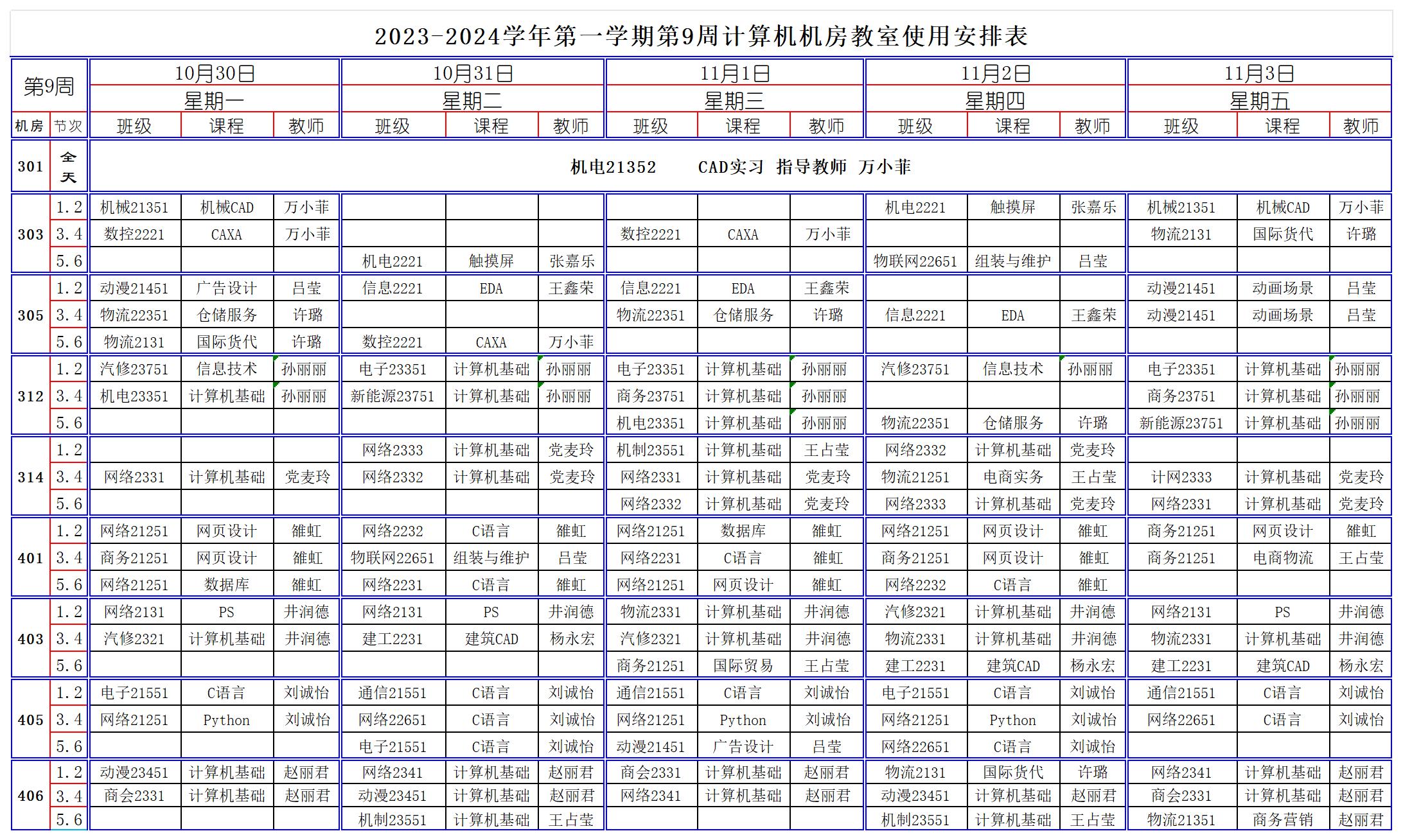 陜西省電子信息學(xué)校2023-2024學(xué)年第一學(xué)期第9周機(jī)房排課表